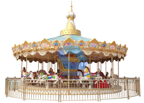 Carousel ride is a classic amusement ride including large, rotating platform with horse-shaped seats for people to ride or amusement, also called musical merry go round. Carousel ride is suit for both children and adults to play in amusement park, playground, shopping center and family entertainment centers. Movement of going up and down with festive music bring players a lot excitement.